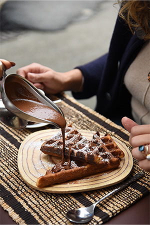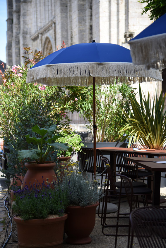 Au menu, fraîcheur et saveurs d’ailleurs en intérieur FeuTRé ou en terrasse au pied de la cathédrale.